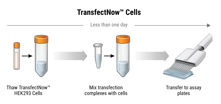 TransfectNow™ HEK293细胞是可靠、即用型、冻存复苏后可直接转染的HEK293细胞,可节省时间,减少连续培养所需的耗材,并提高转染一致性。