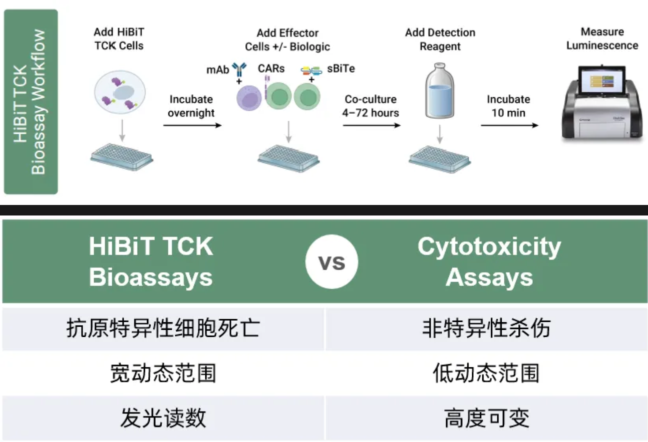 依托HiBiT Target Cell Killing Bioassay(HiBiT靶细胞杀伤生物检测法)获得高生理相关性的细胞毒性数据。