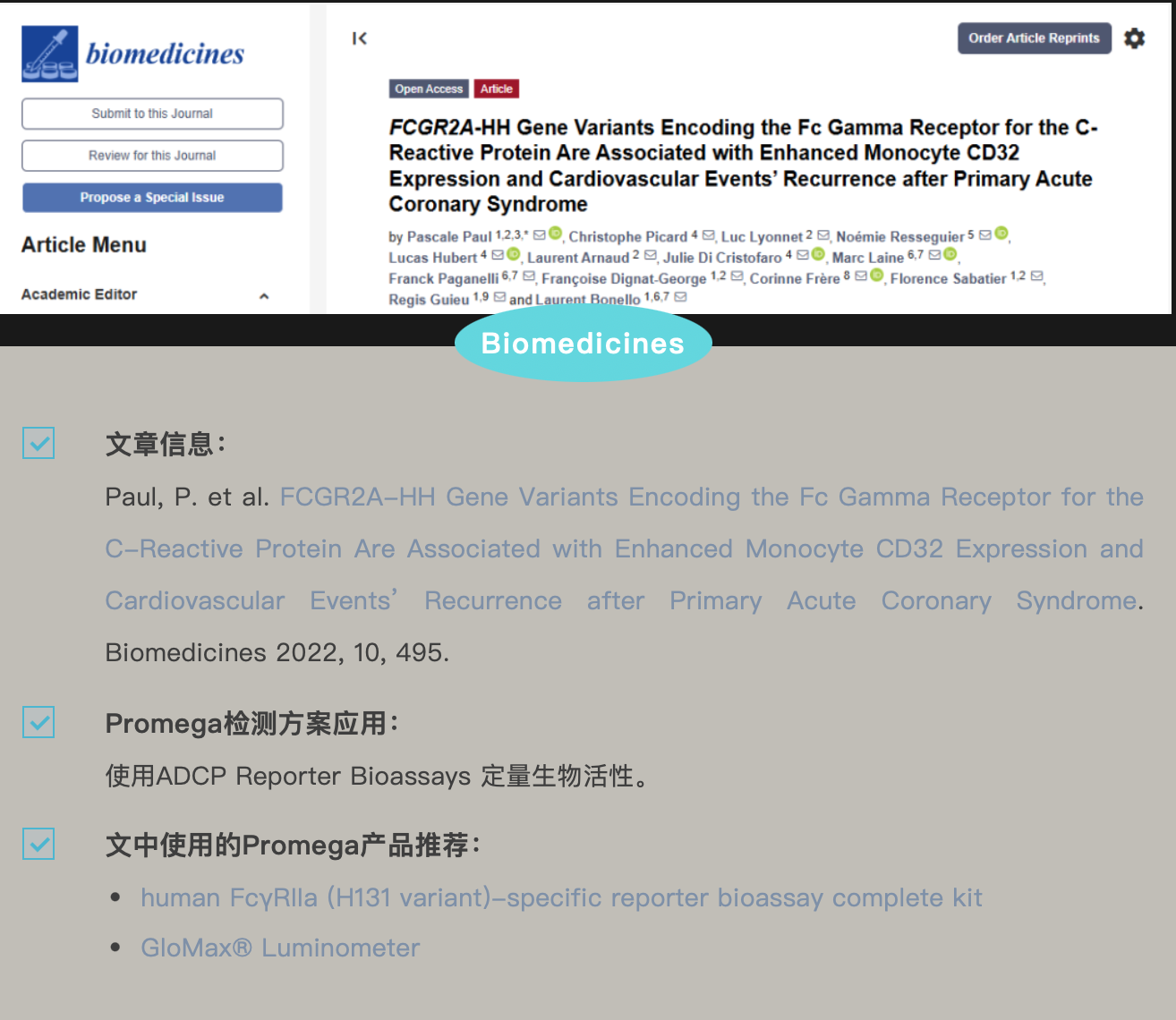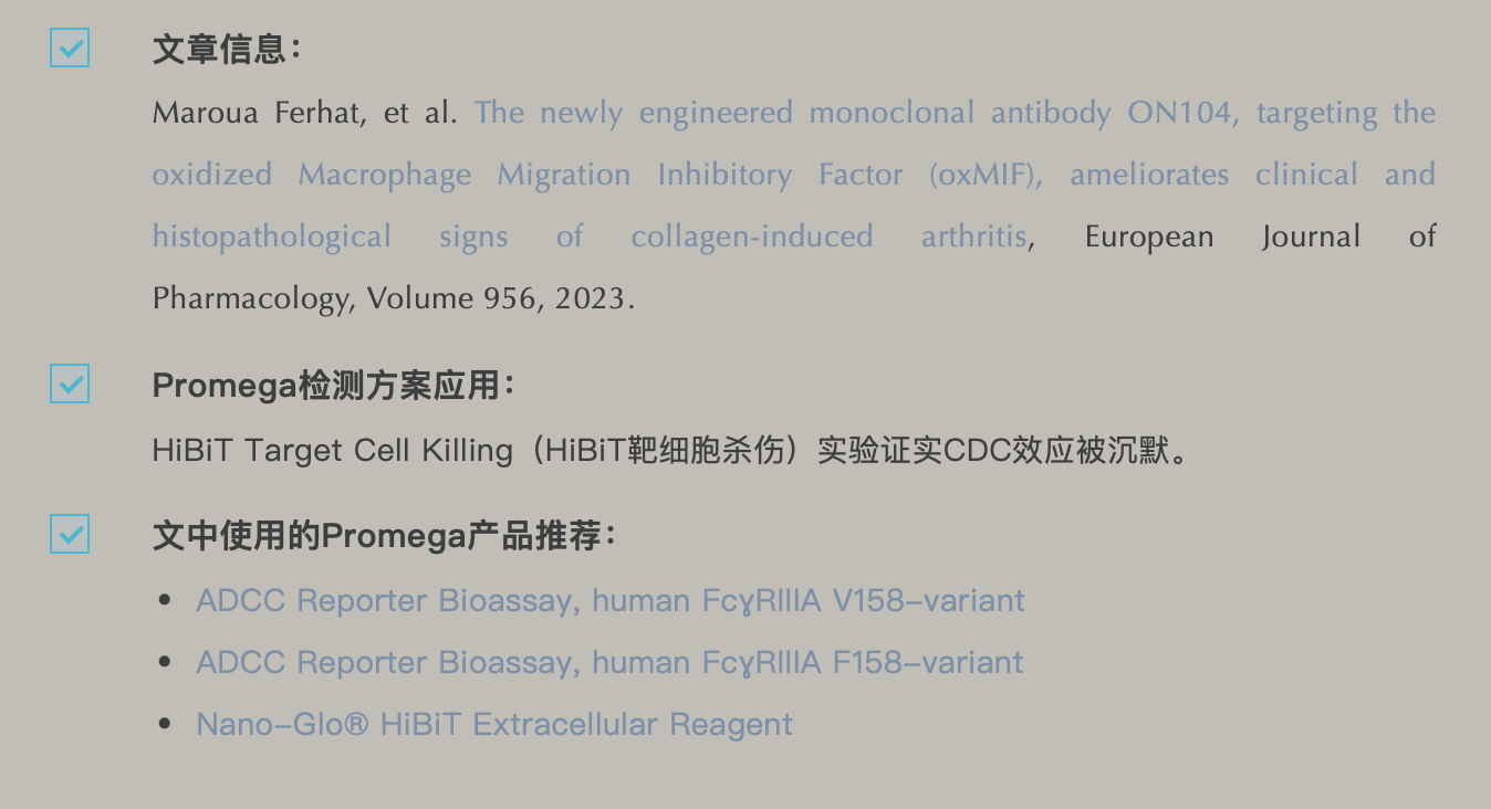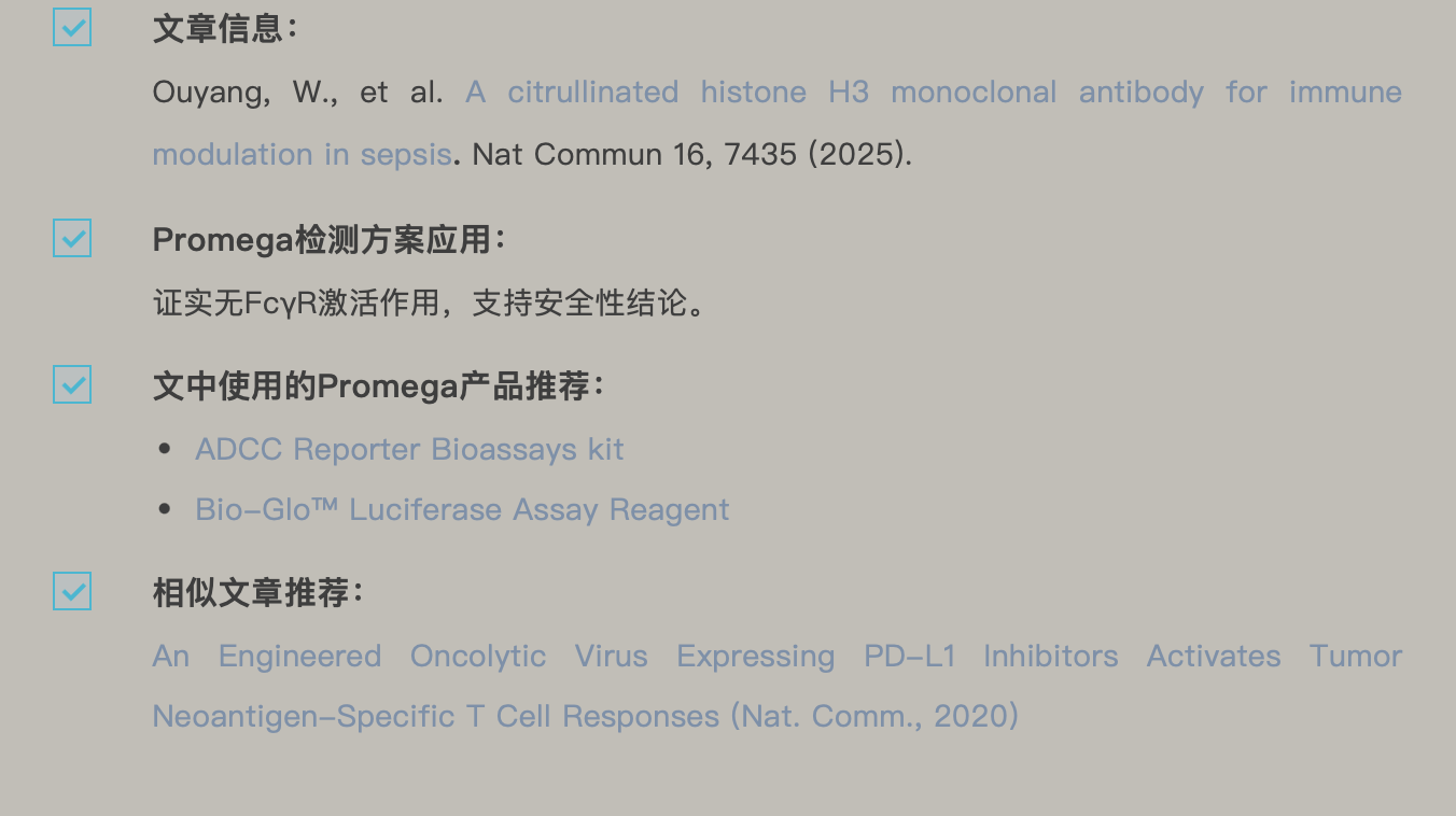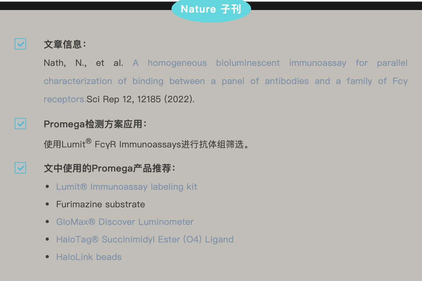 Promega Fc效应因子检测方案已获得日益增多的同行评审文献引用。以下为科学家们如何利用这些方案推动研发进程的具体案例:
