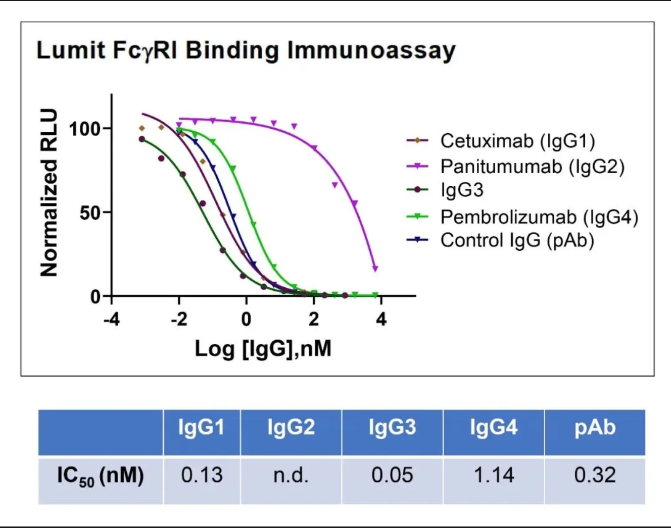 数据展示 | 新型生物发光法检测和比较Fcγ受体对IgG Fc结构域的亲和力