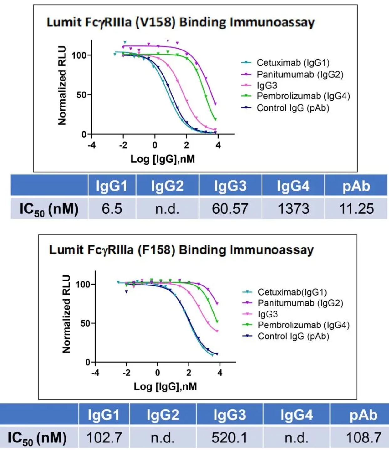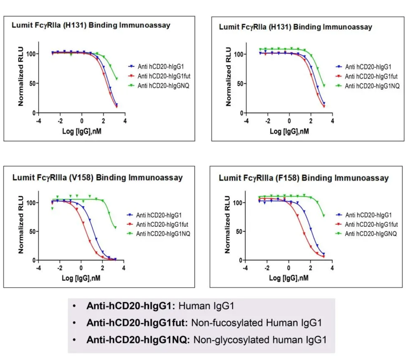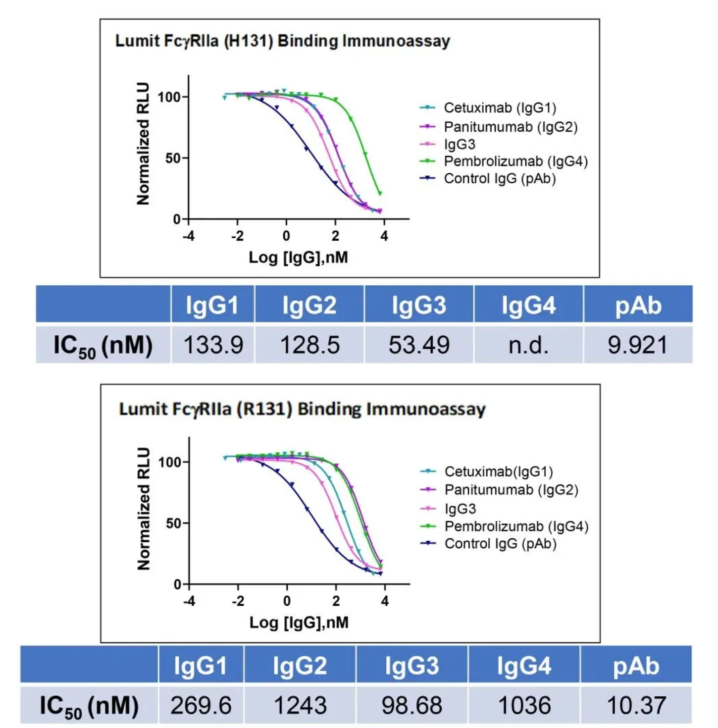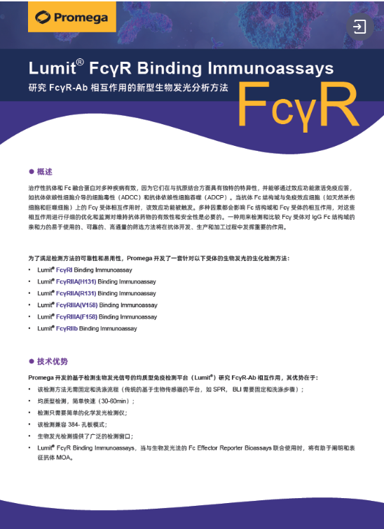 Lumit® 检测方法可用于FcγRI,FcγRIIa (H131 和 R131),FcγRIIIa (V158 和F158)和FcγRllb;