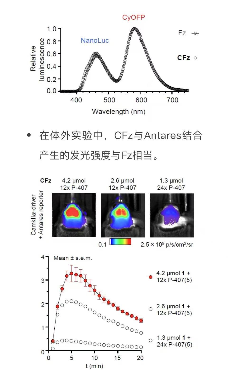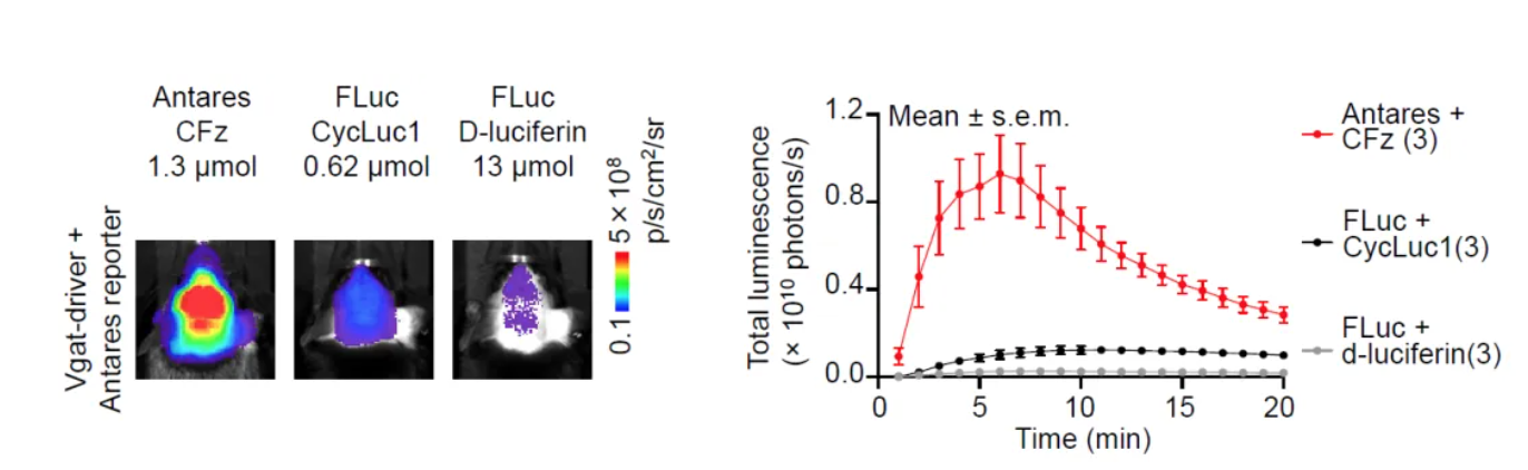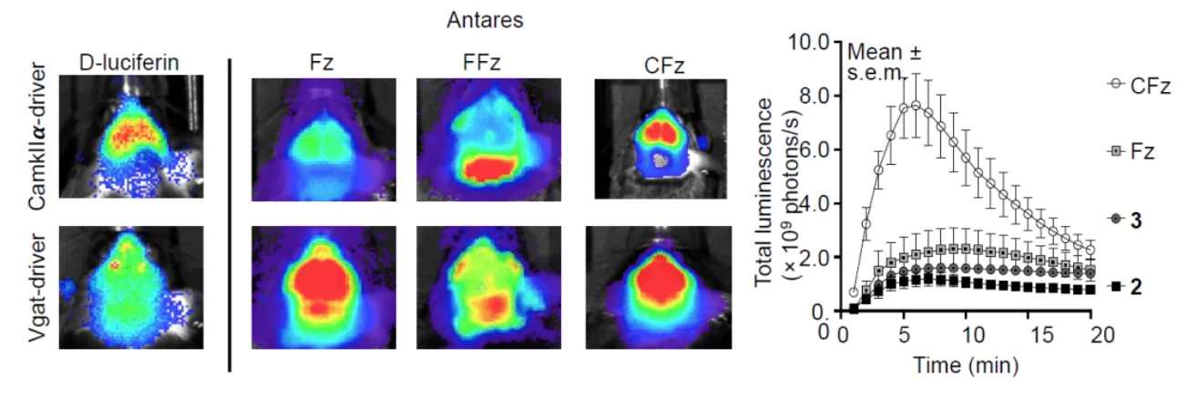 CFz/Antares体系在中枢神经系统成像方面优于所有已报道的海洋萤光素酶系统;