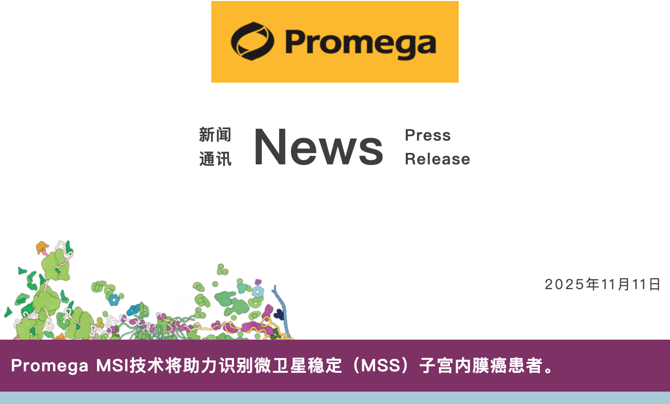 美国威斯康星州麦迪逊市(2025年11月11日)——美国食品药品监督管理局(FDA)已批准Promega公司的OncoMate® MSI Dx Analysis System作为伴随诊断产品,用于识别可能受益于KEYTRUDA®(帕博利珠单抗,pembrolizumab,默克公司的抗PD-1疗法)联合LENVIMA®(仑伐替尼,lenvatinib,卫材株式会社发现的口服多受体酪氨酸激酶抑制剂)治疗的微卫星稳定性(MSS;定义为非微卫星高度不稳定[非MSI-H])子宫内膜癌患者。这是Promega公司首个获得FDA批准的伴随诊断产品。